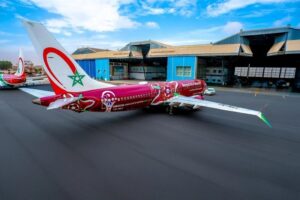 وجاءت الطائرة الخطوط الملكية المغربية مزدانة بشعار خاص وألوان مستوحاة من أجواء العرس الكروي الإفريقي الذي ستشهده المملكة خلال شهري دجنبر ويناير المقبلين. في خطوة تعكس فخر “لارام” بمشاركتها في إنجاح هذا الحدث الرياضي القاري.