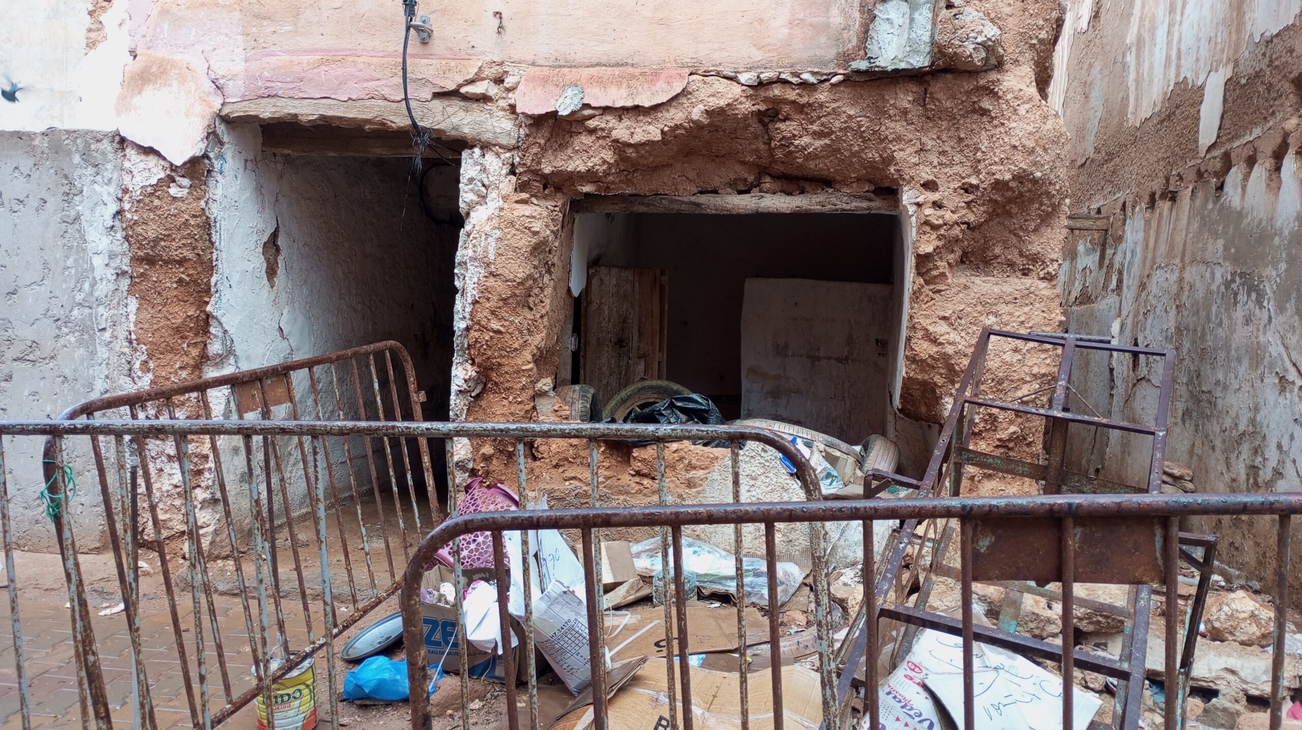 يعيش حي أدوشينان إدزكري بمدينة تيزنيت حالة من الرعب اليومي، بعد أن أصبح السكان والتجار على تماس مباشر مع خطر الانهيار المفاجئ لبناية قديمة مكونة من الطين. هذه البناية، التي يعود بناؤها لعقود طويلة، تظهر عليها تشققات واسعة في الجدران، تساقط أجزاء من السقف، واهتراء الأساسات، ما يجعلها قنبلة موقوتة تهدد حياة الجميع.
